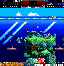 (Hrací automaty) Adder: Tak tuhle hru jsem hrál hezkou chvilku a zjistil jsem následující... vlevo a vpravo se jezdí lodičkou, A a B se střílí vlevo a vpravo... no a teprve asi po padesáti hraních jsem zjistil, že šipkou nahoru a dolů se zrychlují a zpomalují hlubinné bomby... ostuda, co? To dává hře naprosto nový rozměr. >> | |