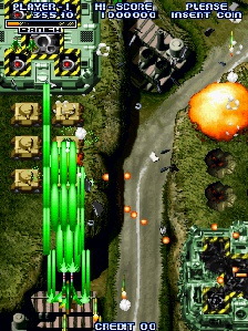 (Hrací automaty) Adder: Ve druhém levelu jsou dvě veliká oranžová letadla se třemi věžičkami. Pokud nejdřív zničíte to levé a pak rychle speciálkou (držení střelby) to druhé dřív, než odlétne, objeví se tam místo bonusu medaile za 100k. >> | |