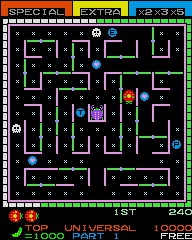 (Hrací automaty) Rotačák: Pár postřehů: Co nejdříve seberte modrá srdíčka, tím se vám každý sežraný bobek účtuje za více bodů (až 5x tolik). Písmena sbírejte když jsou červená a když máte už vysbíraná srdíčka. Pokud vylezou všechny nepřátelé z domečku, objeví se tam ovoce, které je výhodné sebrat, ale je to dost nebezpečné. Zároveň to na chvíli zmrazí nepřátele. Čím se dostanete dál, tím je ovoce za víc bodů. >> | |