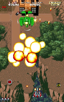 (Hrací automaty) Rotačák: Používá se šest tlačítek (střelba stačí držet): 1) normalní střelba 2) laser 3) rakety 4) Bomba - ohnivý kruh 5) Bomba - laser 6) Bomba - bomba >> | |