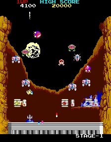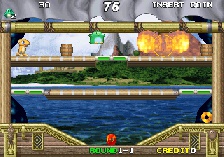 (Hrací automaty) Rotačák: Když z někoho vypadne truhla, házejte do ní ohně. Začnou vylítávat diamanty. V téhle hře se zvyšuje násobič skóre při sbírání bonusů (diamanty...) a po čase to začne pěkně naskakovat a milióny se jen hrnou. Ale jakmile ztratíte život, je násobič zase na nule, takže pokud chcete nahrát velké skóre, dotáhněte to na první život co nejdál. Když zabijete všechny nepřátele na jeden zátah, spadne ze shora velký diamant a když ho necháte dopadnout, rozbije se na mnoho malých. Pokud ho seberete před dopadnutím, je za něj jen 10000 bodů. >> | |