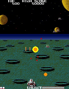 (Hrací automaty) Rotačák: Taktika je sestřelovat černý díry. Nejlíp se to dělá tak, že se nechá první a poslední ufon naživu a potom když znovu přiletí, tak se ten první musí zastřelit, poté rychle střílet do díry a než přiletí poslední, tak díru ideálně dodělat. Díky mezeře mezi prvním a posledním nepřítelem je dost času na palbu do díry. Ale stejně je to těžký. >> | |