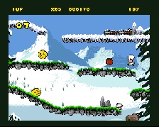 (Amiga) Zdenec: Na začátku levelu musíte najít takovou jakoby síťku, do té pak budete chytat jídlo. Síťku použijete delším podržením FIRE. Pokud chcete, můžete jídlo před chycením omráčit, a to buď skočením na hlavu, nebo, pokud seberete střelivo, střelou - krátký stisk FIRE. Jídlo pak můžete postupně, nebo naráz, nosit do klece. Počet jídla, které musíte do klece dostat máte vlevo nahoře. >> | |